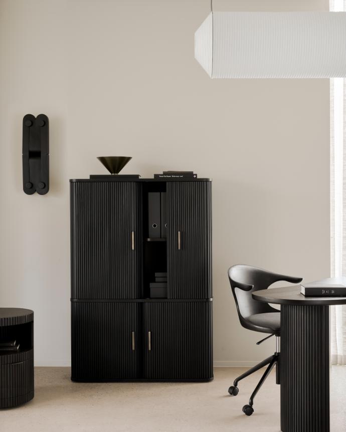 De Flow-collectie geeft een gevoel van beweging door de zachte randen en vloeiende lijnen. Met zacht afgeronde hoeken en subtiele rondingen straalt elk stuk een vintage gevoel uit met een verfijnde, moderne uitstraling - ideaal als aanvulling op veranderende ruimtes en behoeften. De Flow kantoorstoel combineert mooi gevormd massief teakhout met ondersteunend comfort. De gebogen vorm en verfijnde details creëren een rustige aanwezigheid aan het bureau. Ontworpen om geconcentreerd werk te ondersteunen.